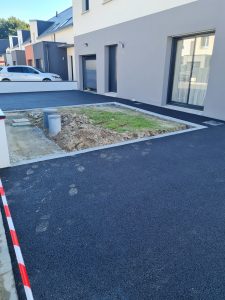 L’aménagement simultané des extérieurs des huit maisons à Liffré crée des conditions techniques plus favorables. Du fait du volume, l’enrobé est plus chaud, ce qui lui permet d’être plus résistant à l’abrasion et aux intempéries. En d’autres termes, il est plus solide plus longtemps.