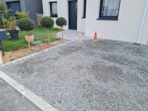 Par contre, la préparation du chantier pour ces maisons de lotissement à Liffré est réalisée le même jour. Cela inclut notamment le terrassement, l’empierrement, le compactage, le dallage, le pavage ou encore la pose des bordures si nécessaire. De la même manière, la réalisation des motifs est effectuée au préalable. Chacun d’eux est une création unique et 100% personnalisée.
