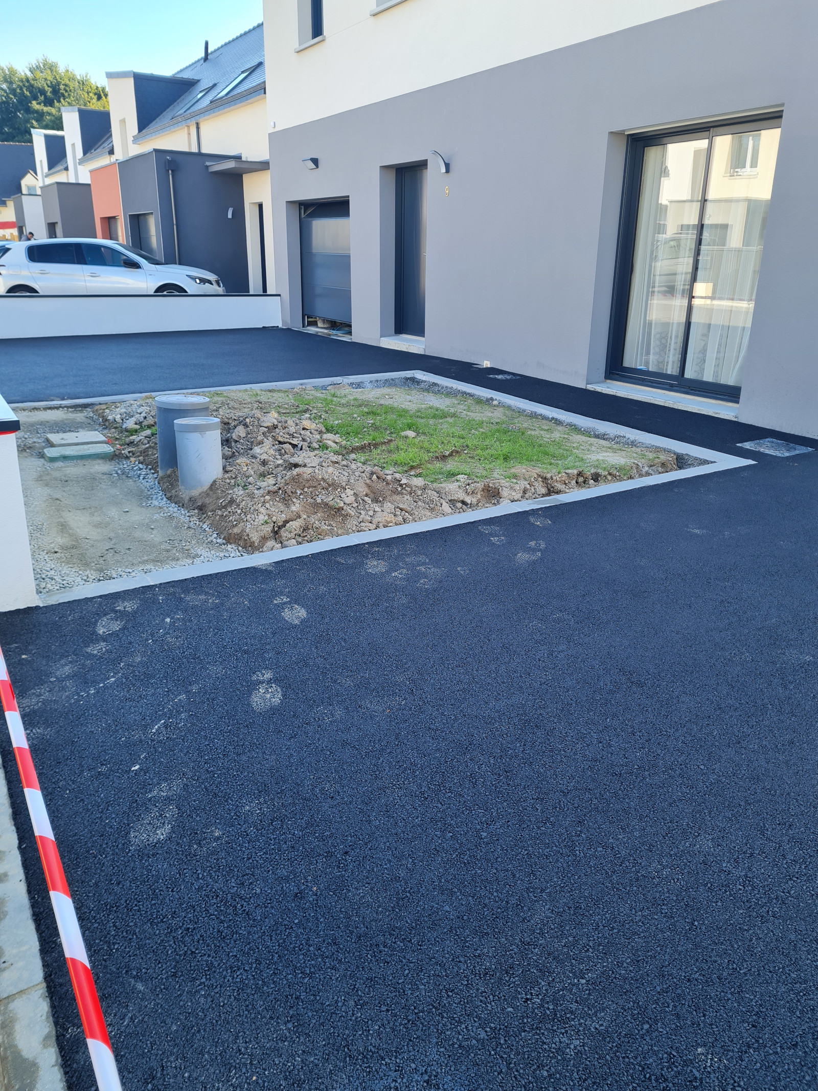 L’aménagement simultané des extérieurs des huit maisons à Liffré crée des conditions techniques plus favorables. Du fait du volume, l’enrobé est plus chaud, ce qui lui permet d’être plus résistant à l’abrasion et aux intempéries. En d’autres termes, il est plus solide plus longtemps.